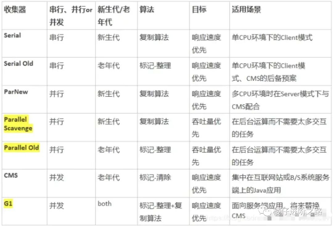 HotSpot VM中的垃圾回收器,以及适用场景: