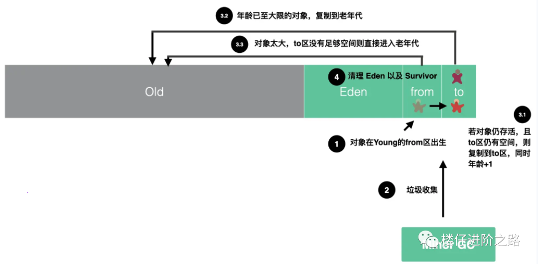 通常情况下,初次被创建的对象存放在新生代的Eden区,当第一次触发Minor GC,Eden区存活的对象被转移到Survivor区的某一块区域。以后再次触发Minor GC的时候,Eden区的对象连同一块Survivor区的对象一起,被转移到了另一块Survivor区。可以看到,这两块Survivor区我们每一次只使用其中的一块,这样也仅仅是浪费了一块Survivor区。