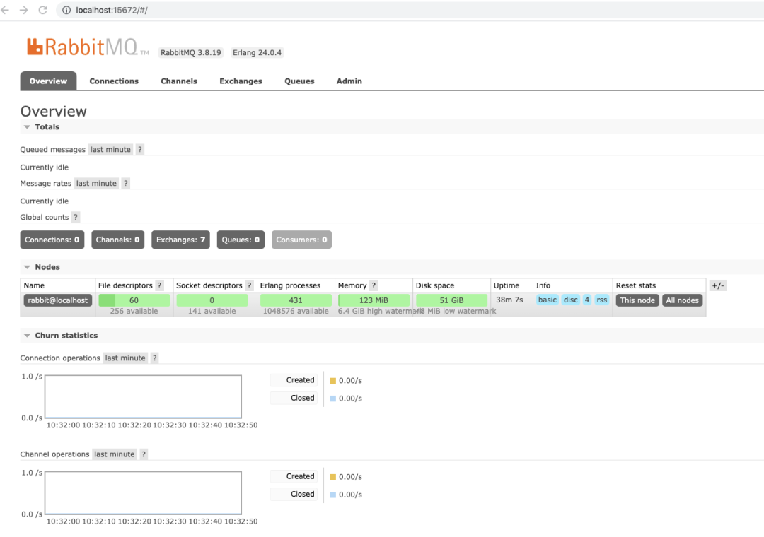 会出现RabbitMQ后台管理界面(用户名和密码都为guest):
