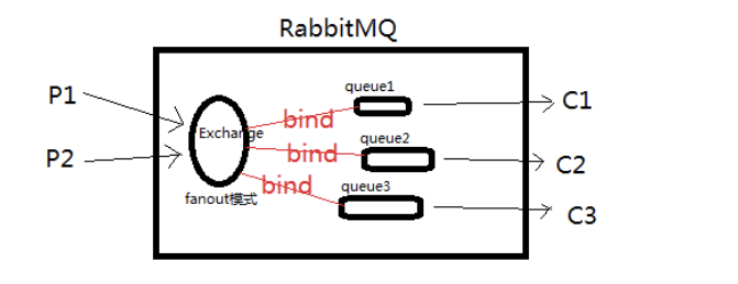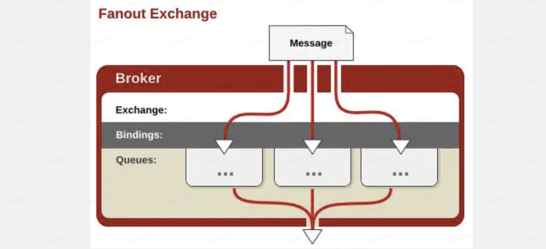这幅图就画出了Fanout的精髓之处,exchange会和所有的queue进行绑定,不区分路由,消费者需要绑定指定的queue才能发起消费。