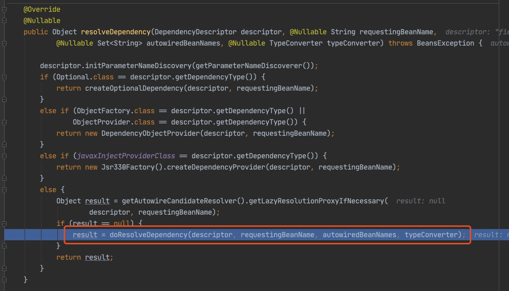 获取 louzai2 的 bean,从 doGetBean(),到 doResolveDependency(),和第一层的逻辑完全一样,找到 louzai2 依赖的对象名 louzai1。