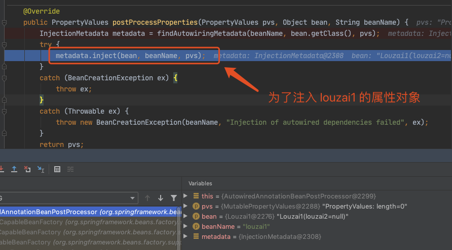 这里需要多跑几次,把前面的 beanName 跳过去,只看 louzai1。