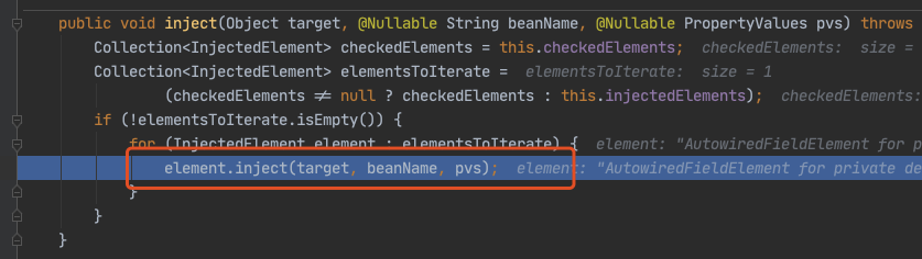进入到 populateBean(),执行 postProcessProperties(),这里是一个策略模式,找到下图的策略对象。