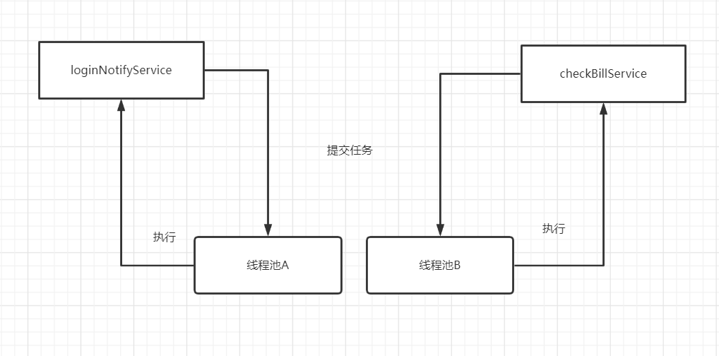 要避免所有的业务逻辑共享一个线程池。比如你用线程池A来做登录异步通知,又用线程池A来做对账。如下图: