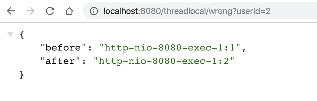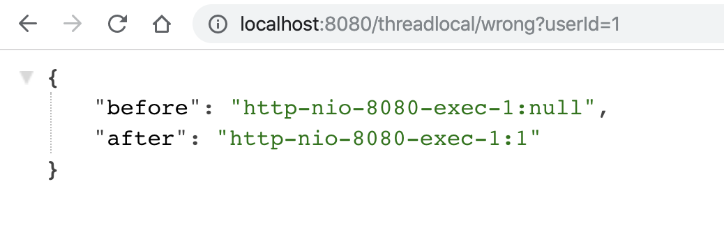 String before = Thread.currentThread().getName() + ":" + currentUser.get();